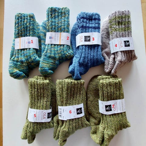 Nylig strikket ullsokker i forskjellige størrelser. Jeg har forskjellige størrelser og farger.