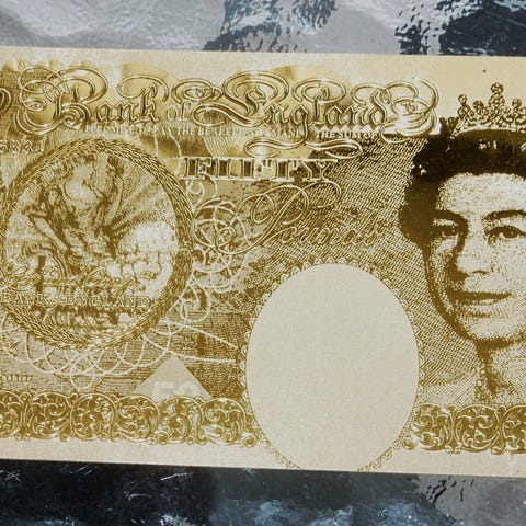50 £ gullbelagt seddel. Samlerobjekt