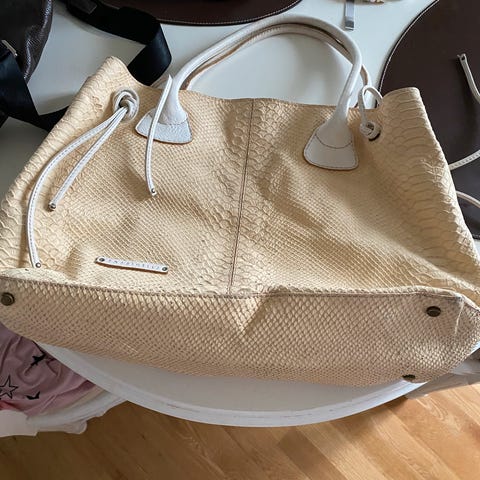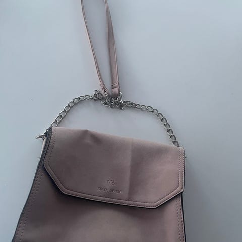 Liten, indre lomme. Glidelås i vesken. Noen små bruksmerker.
