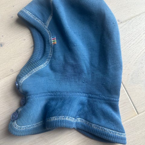 Balaclava fra Joha i str 9-12 mnd. Passer sikkert frem til barnet er 3 år. Romslig og deilig ull. Fremstår som ubrukt.
