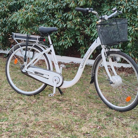 Merida elektrisk damesykkel (august 2016) utstyrt med Bosch motor og display. Sykkelen har kraftig motor, skivebremser og er designet for komfortabel bruk. Passer til daglig pendling og fritidsbruk. Den trenger nytt batteri, det som står på er ødelagt. Har prøvd den med et «lånebatteri», da virker alt som det skal. Gir og bremser er av nyere dato.