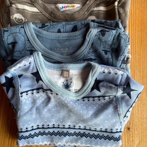 1 smørgul ullgenser fra Reflex (str 98/104), men denne er liten i strørrelsen.