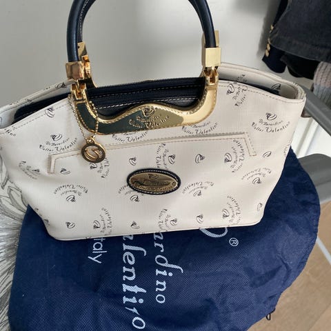 River Island Dame Veske laget av plast i beige farge. Vesken har to håndtak og dekorative detaljer i gullfarge. Passer for damebruk og er egnet til daglig bruk som en håndveske.