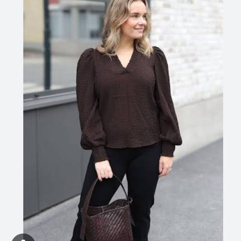 Omslagsbluse. Noen få nupper som syns om man gransker. Selger den også i rød, se egen Tise.