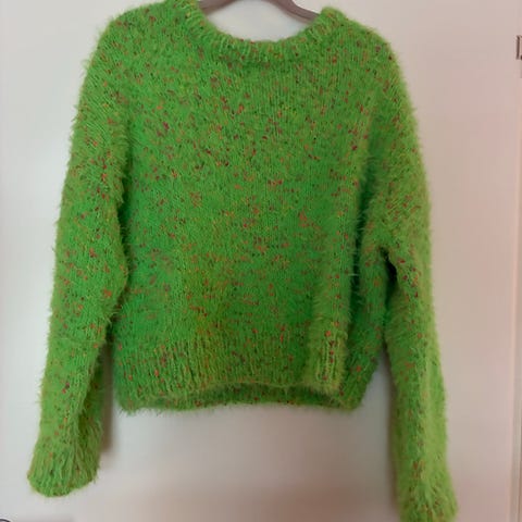 Flerfarget genser i Alpakka blend garn. Strikket med enkel tråd.