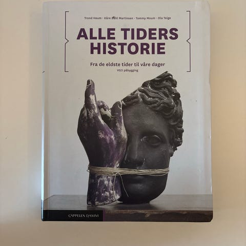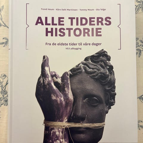 Alle Tiders Historie historiebok som dekker historiske perioder fra de eldste tider til våre dager. Boken er egnet for studier innen historie og gir en oversikt over viktige hendelser og epoker.