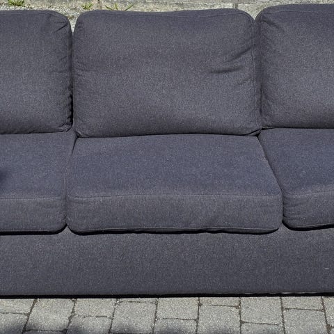 Veldig fin sofa i ull. Lys grå melert rygg og sete. Grønn rygg innvendig. Veldig fast og fin å sitte i. Ser helt ubrukt ut. Holder seg pent. Perfekt som romdeler.