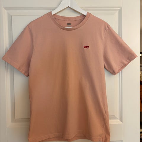 Levi's Standard T-skjorte i størrelse M for menn. T-skjorten er hvit og laget av bomullsmateriale. Den har en enkel design med Levi's-logo på brystet.