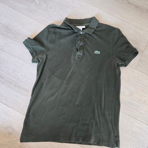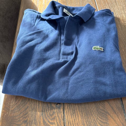 Lacoste Classic Fit Polo T-skjorte i blå farge, størrelse M. Laget i bomullsmateriale med klassisk krage og knappestolpe. Passer for menn.