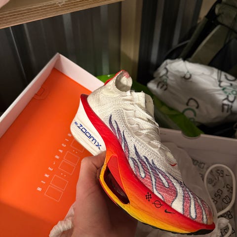 Saucony Endorphin Elite 2 i fargen coral/white. Størrelse 38,5. Kjøpte disse i oktober. Testet én gang på mølle og 5 km tempo utendørs. Knallgode sko, selges da jeg har kjøpt en annen farge!