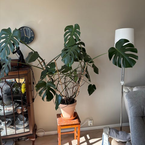 Fint nydelig ekte stor Monstera tre plante inkl sort potte. Stor monstera høyde cir. 130 cm med potte. Flott monstera/vindusblad. Planten trives godt og det kommer stadig nye blader ny stikling. Fkete store Monstera stiklinger klar til planting. Stilren unik nydelig stillig pynt som gi rommet nydelig stilig koselig stemning. Flott pynt til bryllup bursdag dap 17.mai jul nyttår graduation sommer fest eller store jubileum eller om så et ball så setter de en flott og stilig touch til hele rommet.