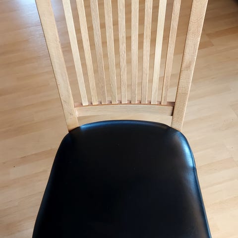 Selger 10 solide og stabile stoler i heltre eik med sort, polstret sete.