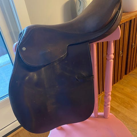 Sal som er god å ri, men passer dessverre ikke hesten lenger. Salen har god støtte fra kneputer, så man får god hjelp til å sitte nede.