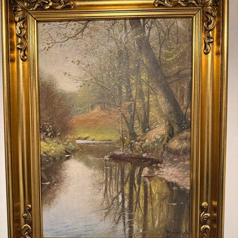 John Hedberg maleri med motiv av havlandskap og fyrtårn utført i olje på lerret. Maleriet er signert og datert 1921. Inkludert i en dekorativ og original treramme. 77cm * 55 cm inkl ramme
