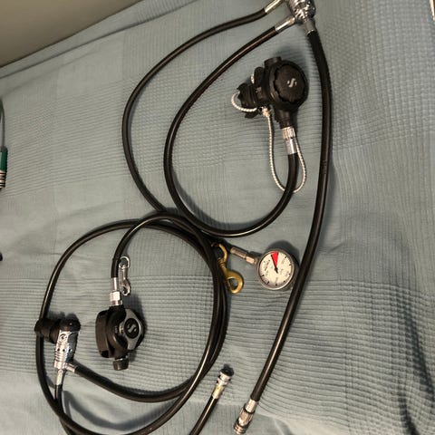 Utstyret ble sist servet i 2018, og har kun hatt to dykk etter service. Etter dette har det stått tørt og lagret innendørs. Selges derfor som serviceobjekt, og kjøper må påregne full service før bruk.