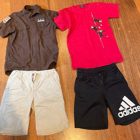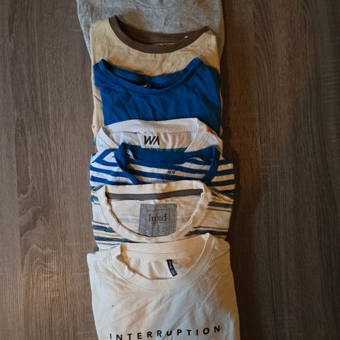 4 skjorter selges da min sønn har vokst ut av dem. Han brukte alle skjortene da han var 8 og 9 år gammel. Og selv om det står 10 til 11 år på den ene skjorten var den allerede liten til han da han var 10.