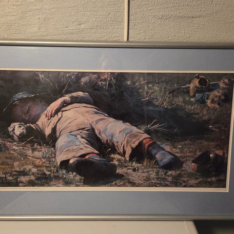 22,3 x 17,1 cm kunsttrykk, innrammet, av kunstverket «Sovende Skagen dreng» fra 1883.