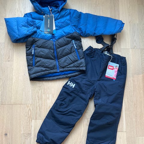 Bergans dunjakke 110 og Helly Hansen vinterbukse 110