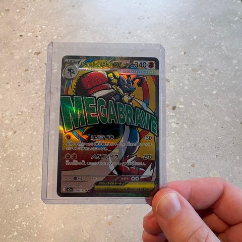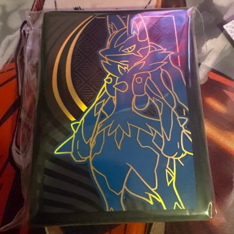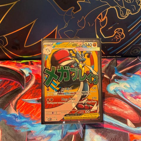 Pokémon Mega Lucario EX. Kortet er tatt ut av pakning og rett inn i sealcase