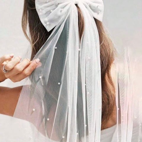 Ubrukt brudeslør med perler og sløyfe selges for 250kr. Fint å bruke både under sermonien, til bryllupsfesten eller til bryllupsrelaterte arrangement som utdrikkningslag, rehearsal dinner, bryllupsreise eller til opplegg dagen før bryllupsdagen. Kan også brukes til brudepike.