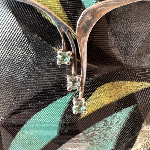 Vintage halskjede 925S, lengde 50 cm. Vakkert anheng med vakre grønne stener, mulig Peridot, tungt, 15,1 gram og stemplet 925S