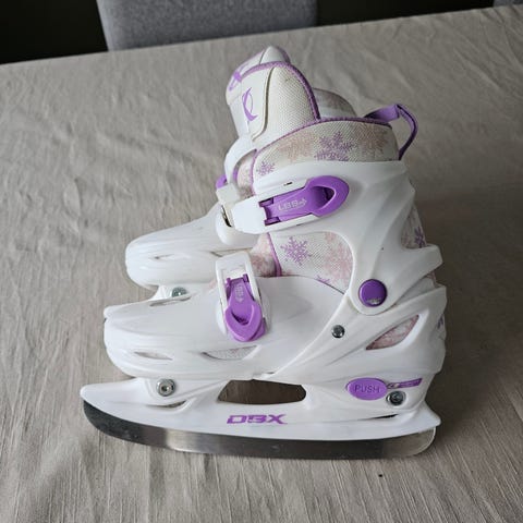 Pent brukte barneskøyter selges. God passform og behagelige å ha på. Perfekt for barn som vil lære å gå på skøyter eller bruke dem på isbanen. Lite brukt og i god stand.