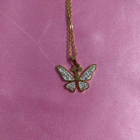 Trendy bamseanheng i forgylt metall og besatt med rosa glitrende stener. Kjede i forgylt gull. De kan brukes som charms på armbånd, henges på som dekor på øreringer eller brukes som smykke. Perfekt til layering med andre smykker og kjeder. Passer for alle aldre. Ubrukt.