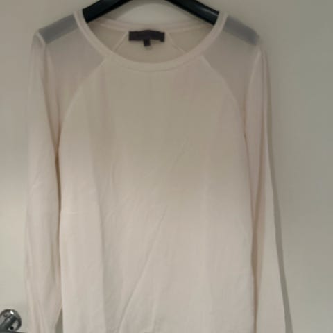 Elegant og myk silkegenser fra Jigsaw i størrelse M. Langermet. Farge: krem/off-white. 100 % silke i front og rygg, med behagelige stretch-paneler i sidene. Pent brukt og uten flekker eller skader.