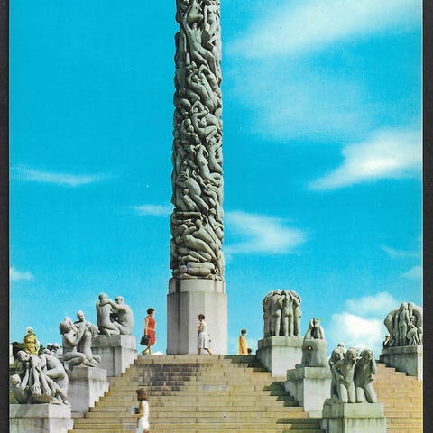 Postkort med motiv av Monolitten i Vigelandsparken, Oslo. Strøkent, ubrukt A6-format. Se bilder