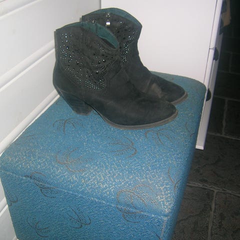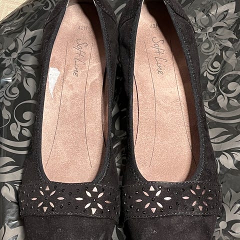 Marco Tozzi pensko i størrelse 42 laget av svart semsket imitert skinn. Skoene har en solid gummisåle med mønster for bedre grep. Egnet for kjole og bukse, korpsuniform, formelle og uformelle anledninger -250,- kr