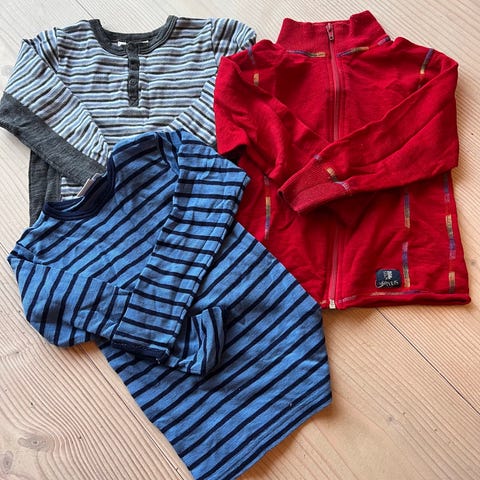 Brukt et sekund av gutt som likevel ikke taklet ull mot kroppen. Lappen er derfor av, men med.