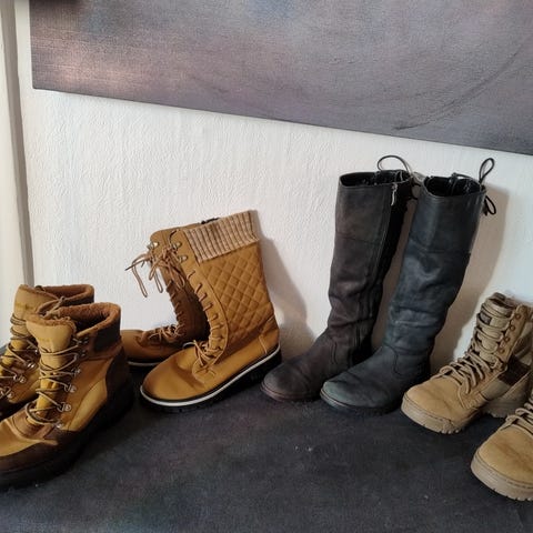 Brukes av kvinner i Forsvaret i utlandet. Skoene er bare prøvd på. Vernetupp og antiskli. Gode tursko.