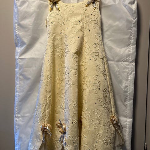 Kjempe søt kjole som kan brukes som pen kjole/brudepikekjole. «ermene» kan brukes som på bildet, eller oppå skuldrene.