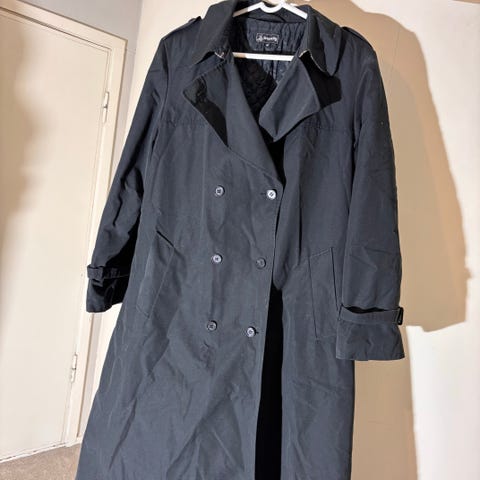 Flott lang jakke / trenchcoat fra Nuage Debenhams. Strl. UK8 / EU 36. Lang tynn frakk med bittelitt metallic look. Som.ny. lang slank modell med skjulte knapper. Lenge 100 cm. XS - SMALL. ingen slitasje