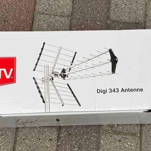 Antennepakke med antenne, forsterker med filter, 25 m kabel, plugger og beslag. Selges komplett for kr 490,00