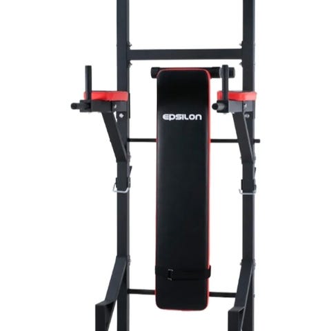 Maxfit Fitness 250 treningsapparat med metallramme og polstret ryggstøtte. Designet for hjemmebruk til styrketrening og generell fysisk aktivitet. Robust konstruksjon med håndtak for støtte under øvelser.