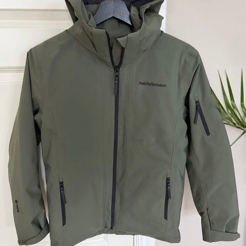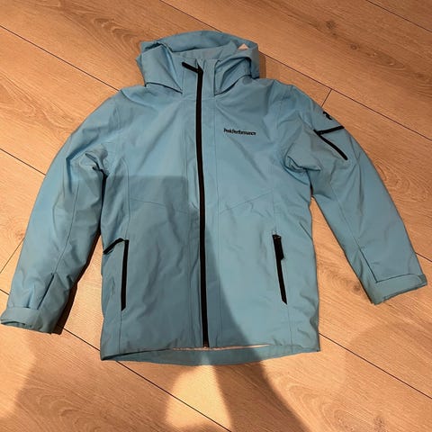Peak Performance Maroon isolerte skijakke i mørk blå og svart. Enkelte skader ved ermene, krage og bunn av kaken. Se bilder. Selges derfor billig.