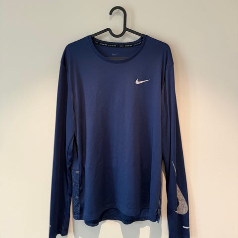 Nike sportstrøye. Prøvd en gang, men ble for trang for mannen i huset. Lang og smal fasong. Nypris 600kr, selges for 200kr.