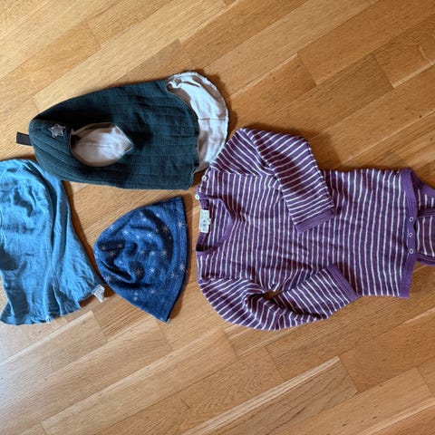 Kun overdel som er brukt et fåtall ganger og vasket for hånd. Buksene ubrukt. Buksene er lange/store og vil passe lenge. ☺️