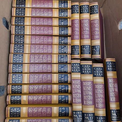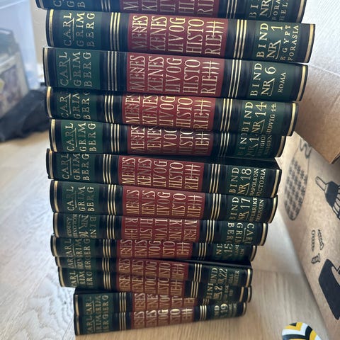 Carl Grimberg Mensens Liv og Historie bokserie består av flere bind med historisk innhold. Bøkene har en klassisk innbinding med gull- og rød detaljer på omslaget. Serien dekker ulike historiske temaer og er egnet for samlere og de som er interessert i historie.