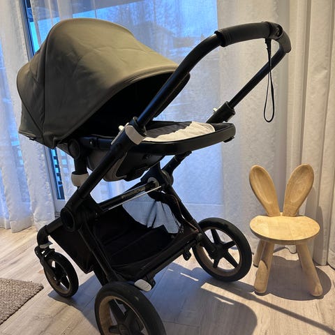 Følger også med bagdel, sovepose, adapter til bilstol og regntrekk.