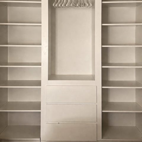 Stor og flott garderobe fra Kvik med masse plass til lagring på kleshengere og i skuffer.