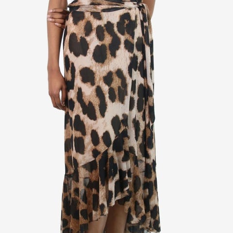 Lekkert omslagsskjørt fra Ganni str 34 (passer også 36 pga omslag). Brukt en gang som nytt. Leopard mønster.