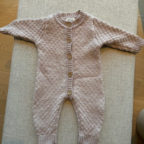 De kortermede bodyene er i 60% bomull og 40% polyester, mens de langermede bodyene er i 100% bomull. Sokkene er fra Lindex og de er også i 100% bomull.
