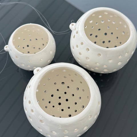 Store kuler til dekor. Laget av tre. Selges samlet for kr100.