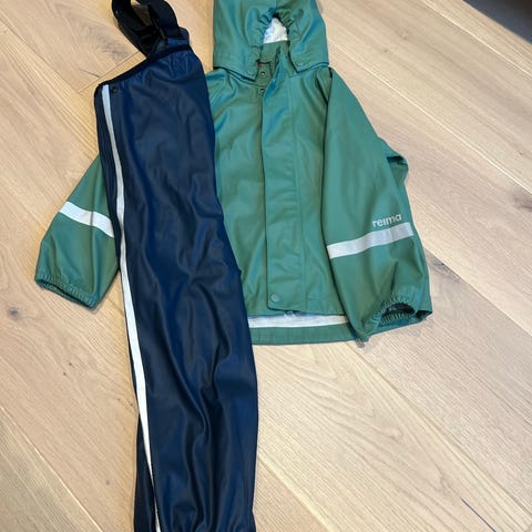 Fint mørk lilla regnsett fra Reima selges. Refleksdetaljer på jakke og bukse. Inntakte fotstrikker. Ingen skader