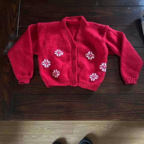 Primark strikket sett for barn, størrelse 128, i rosa med hjerteprint. Settet består av en cardigan med knapper og en matchende singlet. Materiale er mykt og varm.
