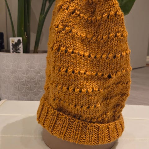 God modell, sitter pent på hodet, one size, pen rustorange dus farge.