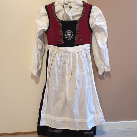 Festdrakt fra Reflex str. 134 og skjorte fra Bunad by Trax. Begge er brukt av en jente str. 140. Så drakten er litt stor, og skjorta liten i størrelsen. Selges samlet!