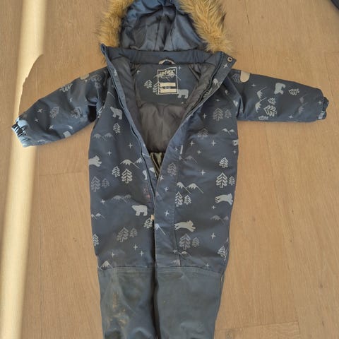 Brukt en sesong av ett barn. Romslig i str og med geniale skulderstropper inne i dressen. Noe slitt mellom knærne, se bilde!